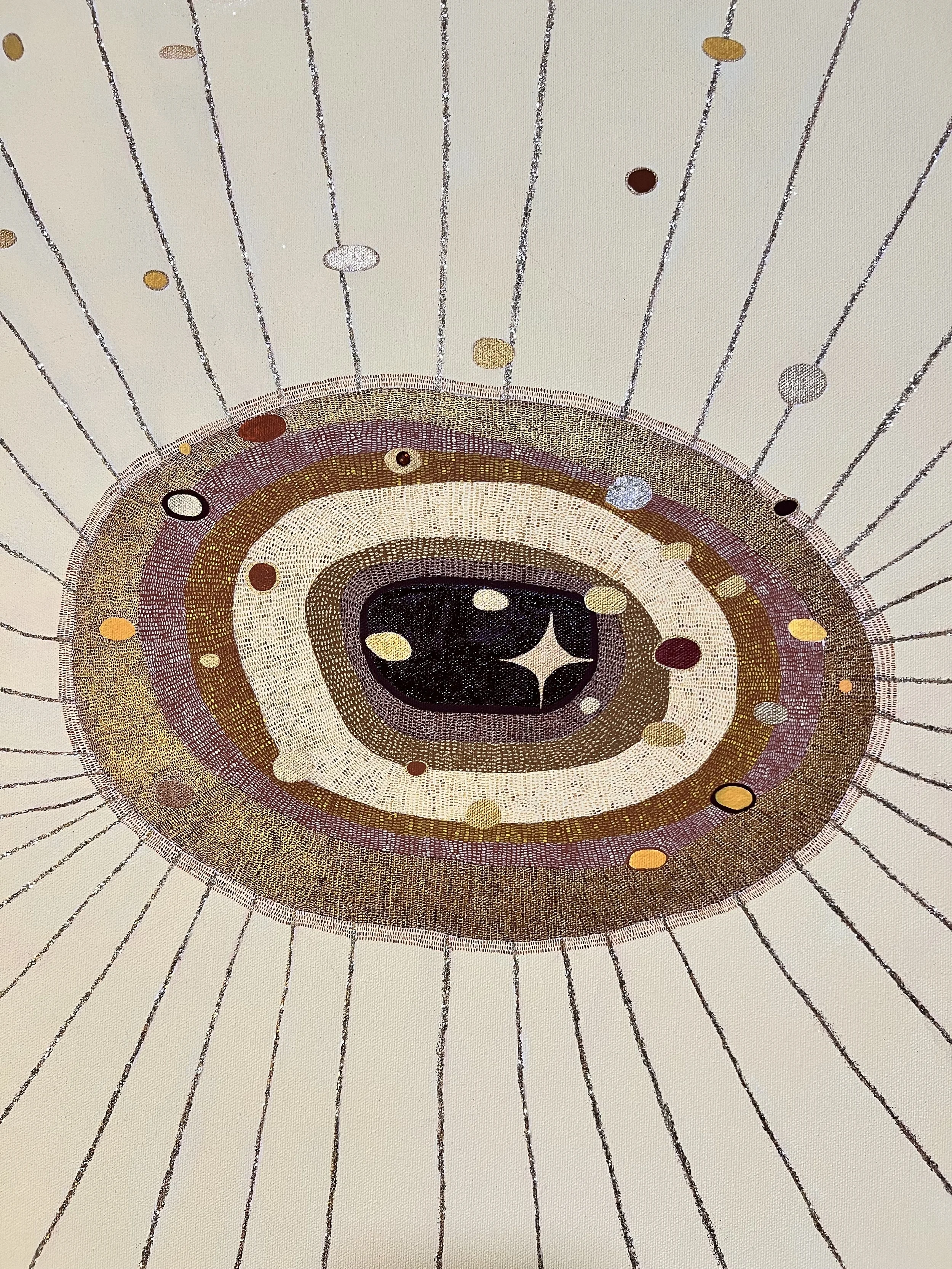 Detail of ‘Source Of Everything’, acrylic paint, clear glaze, iridescent medium, metallic paint, glitter, Swarovski crystal on canvas,155cm x 112cm, 2024